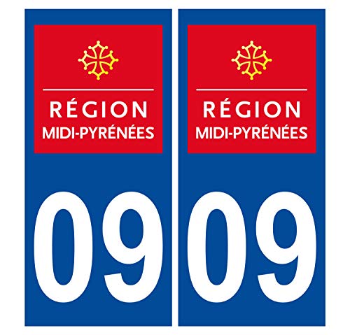 Supstick 2 Stickers Autocollants Plaques Immatriculation Auto Dept 09 Midi Pyrénées Bleu Foncé Angles Carrés