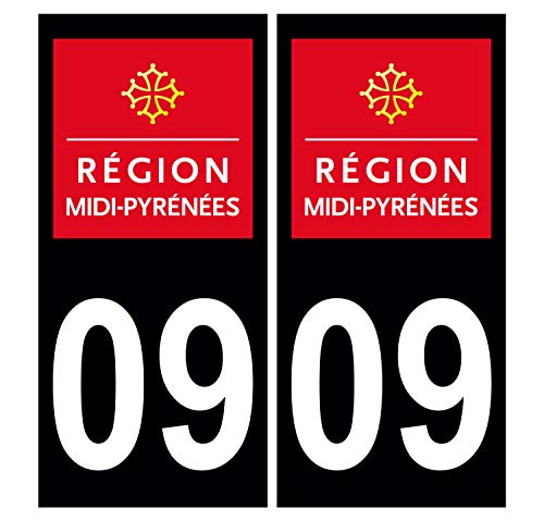 Supstick 2 Stickers Autocollants Plaques Immatriculation Auto Dept 09 Midi Pyrénées Noir Angles Carrés