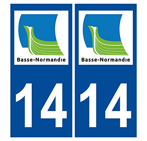 Supstick 2 Stickers Autocollants Plaques Immatriculation Auto Dept 14 Basse Normandie Bleu Foncé Angles Carrés