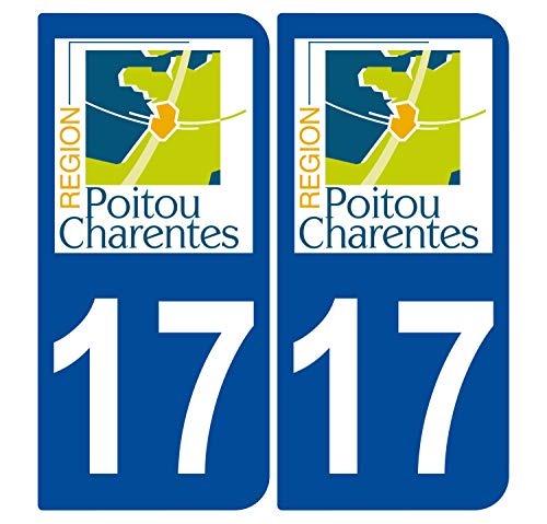 Supstick 2 Stickers Autocollants Plaques Immatriculation Auto Dept 17 Poitou Charentes Bleu Foncé Angles Arrondis