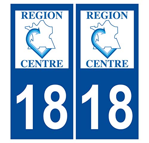 Supstick 2 Stickers Autocollants Plaques Immatriculation Auto Dept 18 Centre Bleu Foncé Angles Carrés