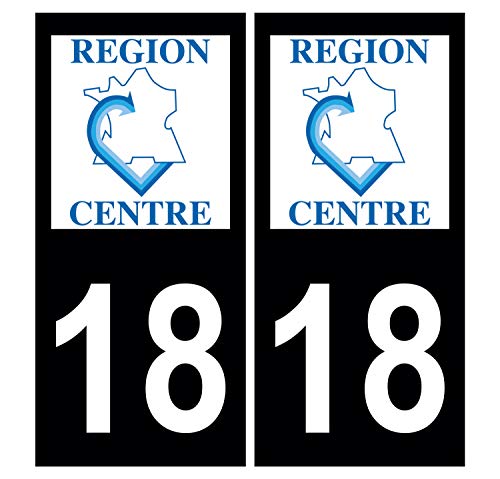 Supstick 2 Stickers Autocollants Plaques Immatriculation Auto Dept 18 Centre Noir Angles Carrés
