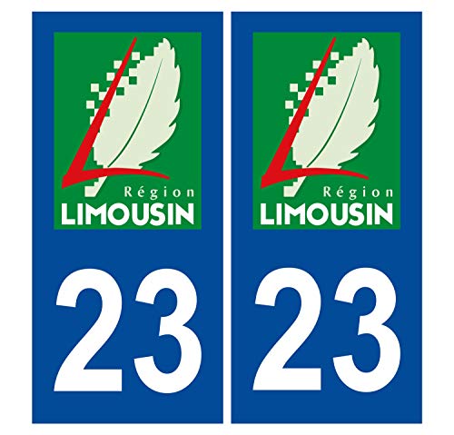 Supstick 2 Stickers Autocollants Plaques Immatriculation Auto Dept 23 Limousin Bleu Foncé Angles Carrés