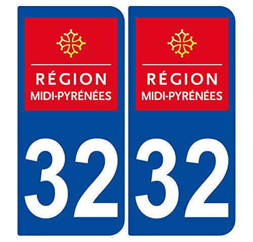 Supstick 2 Stickers Autocollants Plaques Immatriculation Auto Dept 32 Midi Pyrénées Bleu Foncé Angles Arrondis