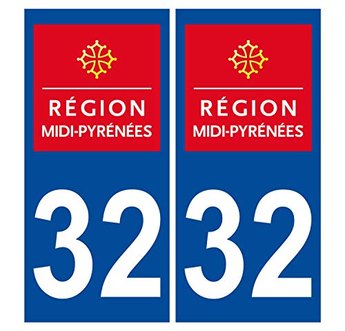 Supstick 2 Stickers Autocollants Plaques Immatriculation Auto Dept 32 Midi Pyrénées Bleu Foncé Angles Carrés