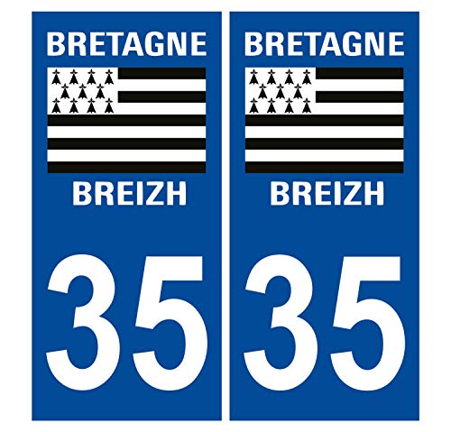 Supstick 2 Stickers Autocollants Plaques Immatriculation Auto Dept 35 Bretagne Breizh Bleu Foncé Angles Carrés
