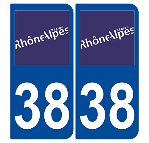 Supstick 2 Stickers Autocollants Plaques Immatriculation Auto Dept 38 Rhône Alpes Bleu Foncé Angles Arrondis