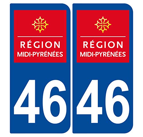 Supstick 2 Stickers Autocollants Plaques Immatriculation Auto Dept 46 Midi Pyrénées Bleu Foncé Angles Arrondis