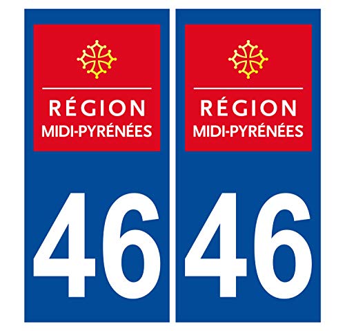Supstick 2 Stickers Autocollants Plaques Immatriculation Auto Dept 46 Midi Pyrénées Bleu Foncé Angles Carrés