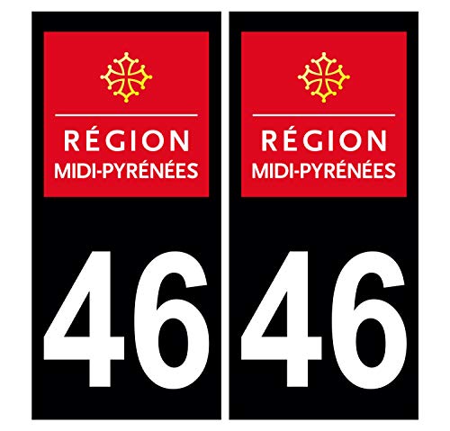 Supstick 2 Stickers Autocollants Plaques Immatriculation Auto Dept 46 Midi Pyrénées Noir Angles Carrés