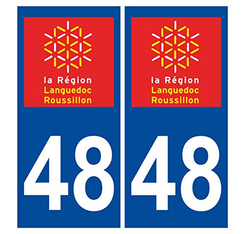 Supstick 2 Stickers Autocollants Plaques Immatriculation Auto Dept 48 Languedoc Roussillon Bleu Foncé Angles Carrés