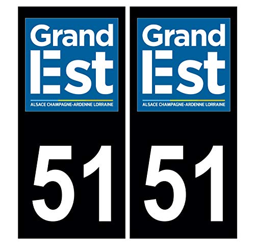 Supstick 2 Stickers Autocollants Plaques Immatriculation Auto Dept 51 Grand Est Noir Angles Carrés