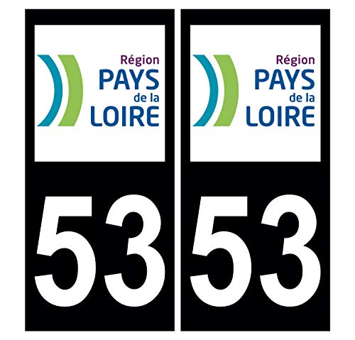 Supstick 2 Stickers Autocollants Plaques Immatriculation Auto Dept 53 Pays de la Loire Noir Angles Carrés