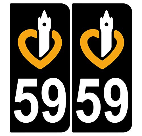 Supstick 2 Stickers Autocollants Plaques Immatriculation Auto Dept 59 Nord Noir Angles Arrondis