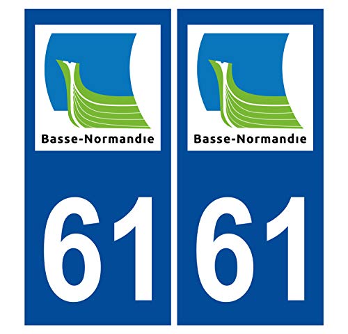 Supstick 2 Stickers Autocollants Plaques Immatriculation Auto Dept 61 Basse Normandie Bleu Foncé Angles Carrés