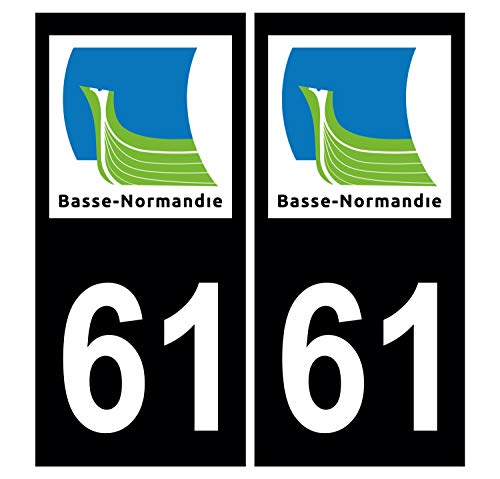 Supstick 2 Stickers Autocollants Plaques Immatriculation Auto Dept 61 Basse Normandie Noir Angles Carrés