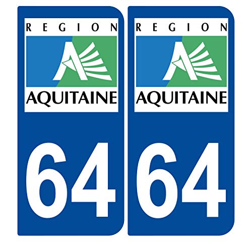 Supstick 2 Stickers Autocollants Plaques Immatriculation Auto Dept 64 Aquitaine Bleu Foncé Angles Arrondis