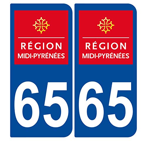 Supstick 2 Stickers Autocollants Plaques Immatriculation Auto Dept 65 Midi Pyrénées Bleu Foncé Angles Arrondis