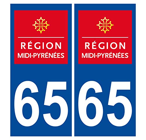Supstick 2 Stickers Autocollants Plaques Immatriculation Auto Dept 65 Midi Pyrénées Bleu Foncé Angles Carrés
