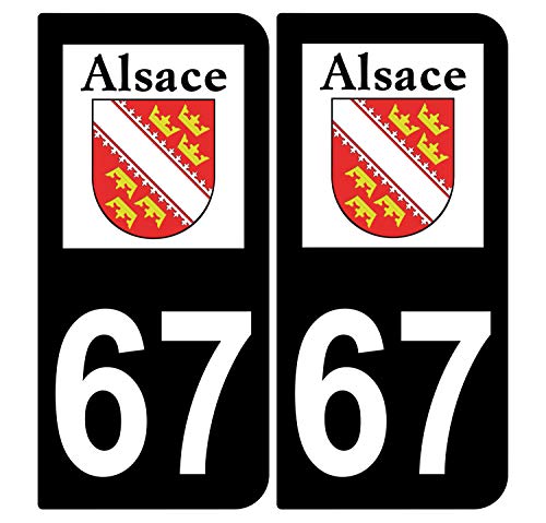 Supstick 2 Stickers Autocollants Plaques Immatriculation Auto Dept 67 Alsace Blason Noir Angles Arrondis