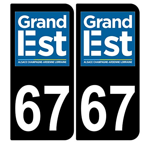 Supstick 2 Stickers Autocollants Plaques Immatriculation Auto Dept 67 Grand est Noir Angles Arrondis