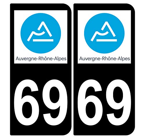 Supstick 2 Stickers Autocollants Plaques Immatriculation Auto Dept 69 Auvergne Rhône Alpes Noir Angles Arrondis