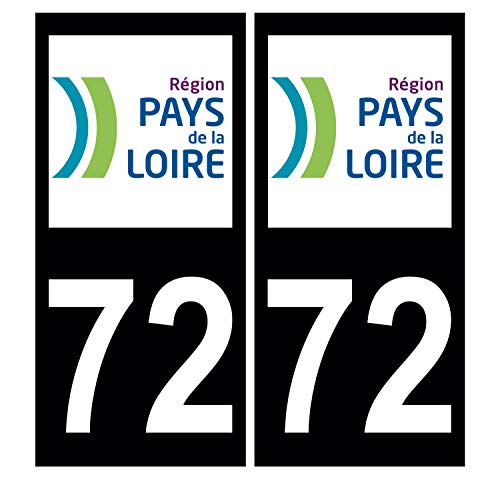 Supstick 2 Stickers Autocollants Plaques Immatriculation Auto Dept 72 Pays de la Loire Noir Angles Carrés