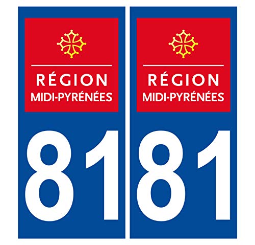 Supstick 2 Stickers Autocollants Plaques Immatriculation Auto Dept 81 Midi Pyrénées Bleu Foncé Angles Carrés