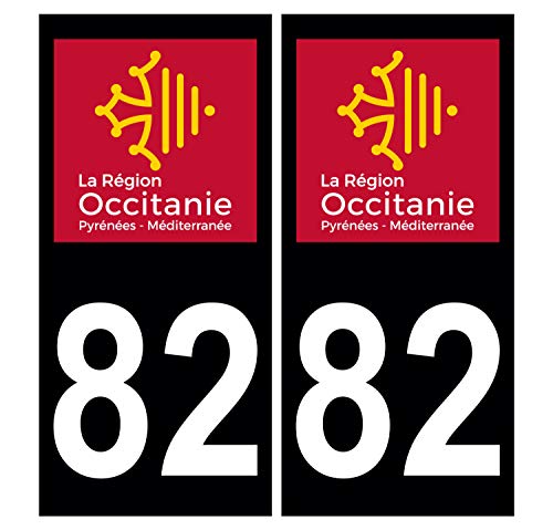 Supstick 2 Stickers Autocollants Plaques Immatriculation Auto Dept 82 Occitanie Noir Angles Carrés