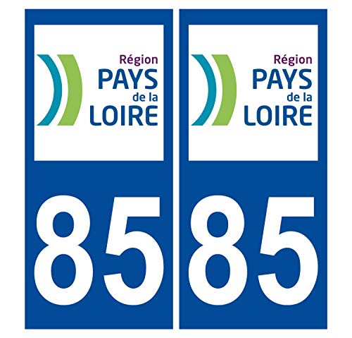 Supstick 2 Stickers Autocollants Plaques Immatriculation Auto Dept 85 Pays de la Loire Bleu Foncé Angles Carrés