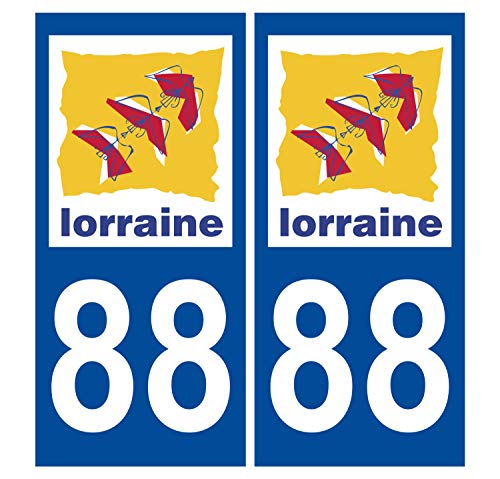 Supstick 2 Stickers Autocollants Plaques Immatriculation Auto Dept 88 Lorraine Bleu Foncé Angles Carrés