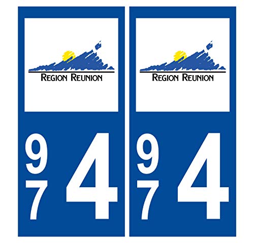 Supstick 2 Stickers Autocollants Plaques Immatriculation Auto Dept 974 Réunion Bleu Foncé Angles Carrés