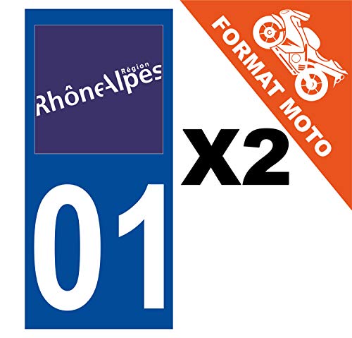 Supstick 2 Stickers Autocollants Plaques Immatriculation Moto Dept 01 Rhône Alpes Bleu Foncé Angles Carrés