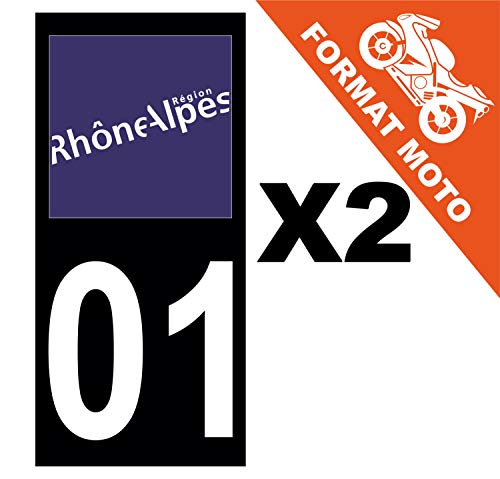 Supstick 2 Stickers Autocollants Plaques Immatriculation Moto Dept 01 Rhône Alpes Noir Angles Carrés