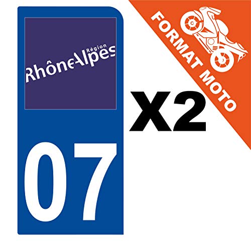Supstick 2 Stickers Autocollants Plaques Immatriculation Moto Dept 07 Rhône Alpes Bleu Foncé 1 Angle Arrondi