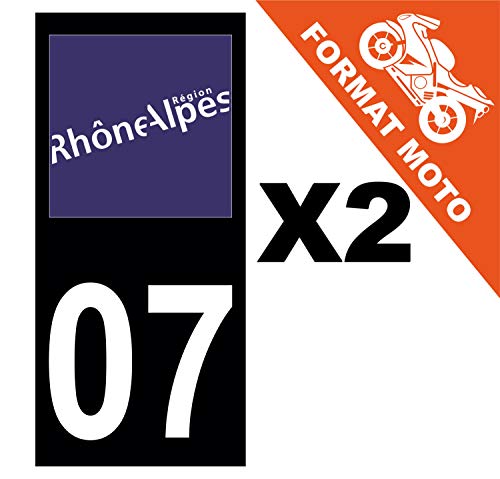 Supstick 2 Stickers Autocollants Plaques Immatriculation Moto Dept 07 Rhône Alpes Noir Angles Carrés