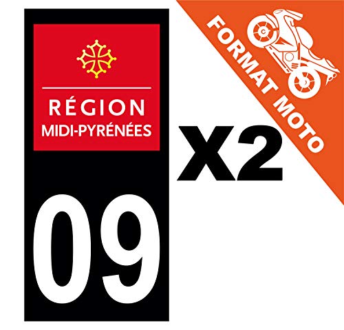 Supstick 2 Stickers Autocollants Plaques Immatriculation Moto Dept 09 Midi Pyrénées Noir Angles Carrés