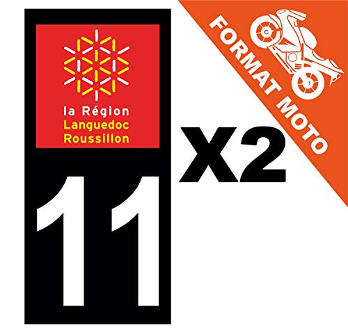 Supstick 2 Stickers Autocollants Plaques Immatriculation Moto Dept 11 Languedoc Roussillon Noir Angles Carrés