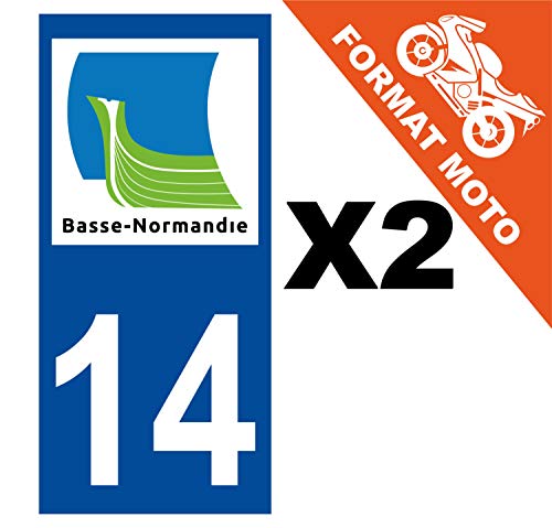 Supstick 2 Stickers Autocollants Plaques Immatriculation Moto Dept 14 Basse Normandie Bleu Foncé Angles Carrés
