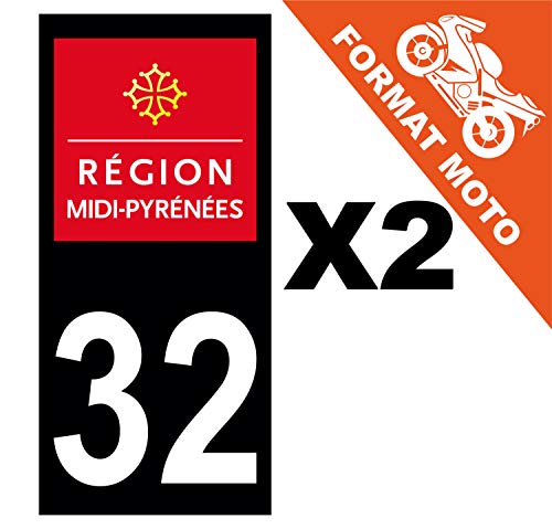 Supstick 2 Stickers Autocollants Plaques Immatriculation Moto Dept 32 Midi Pyrénées Noir Angles Carrés
