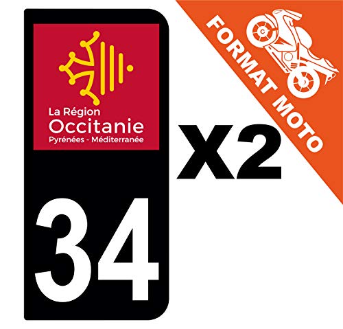 Supstick 2 Stickers Autocollants Plaques Immatriculation Moto Dept 34 Occitanie Noir 2 Angles Arrondis
