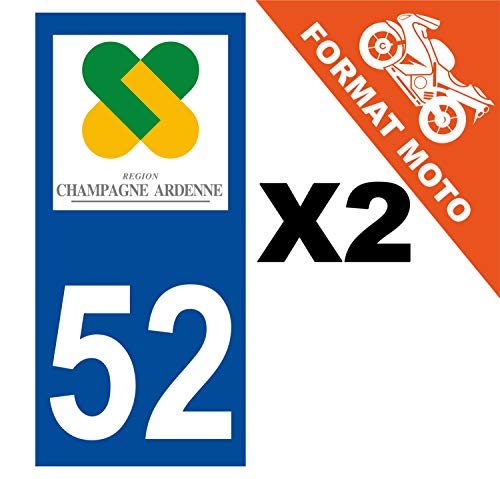 Supstick 2 Stickers Autocollants Plaques Immatriculation Moto Dept 52 Champagne Ardenne Bleu Foncé Angles Carrés