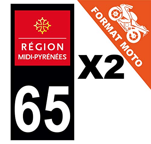 Supstick 2 Stickers Autocollants Plaques Immatriculation Moto Dept 65 Midi Pyrénées Noir Angles Carrés