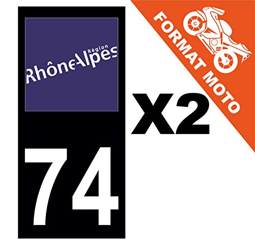 Supstick 2 Stickers Autocollants Plaques Immatriculation Moto Dept 74 Rhône Alpes Noir Angles Carrés