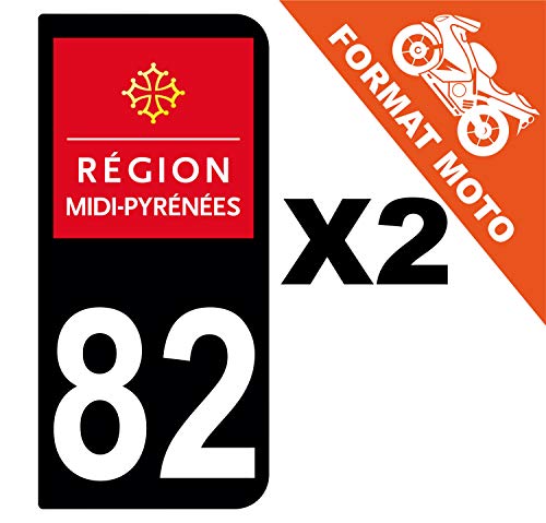 Supstick 2 Stickers Autocollants Plaques Immatriculation Moto Dept 82 Midi Pyrénées Noir 2 Angles Arrondis