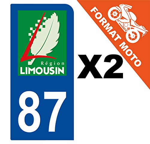 Supstick 2 Stickers Autocollants Plaques Immatriculation Moto Dept 87 Limousin Bleu Foncé 1 Angle Arrondi