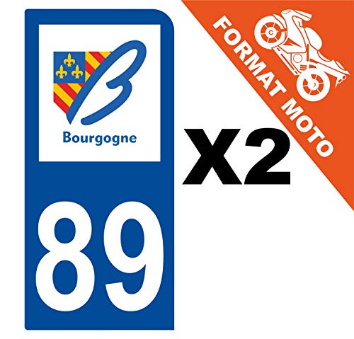 Supstick 2 Stickers Autocollants Plaques Immatriculation Moto Dept 89 Bourgogne Bleu Foncé 1 Angle Arrondi