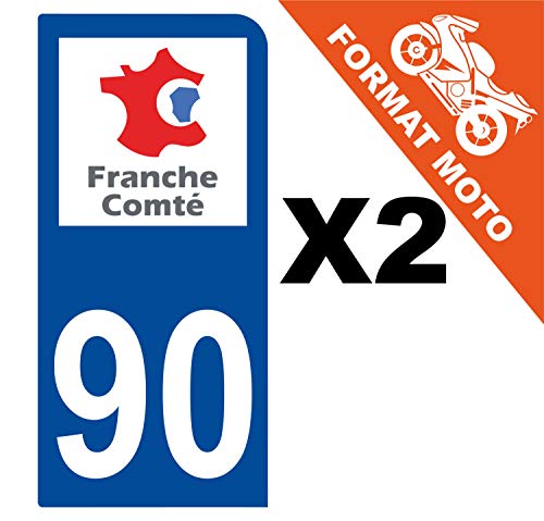 Supstick 2 Stickers Autocollants Plaques Immatriculation Moto Dept 90 Franche Comté Bleu Foncé 1 Angle Arrondi