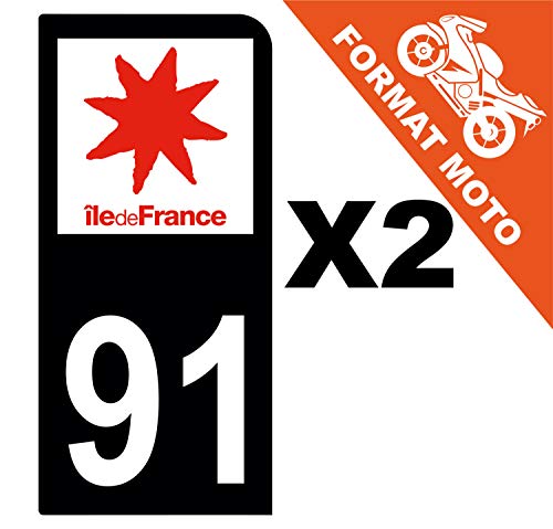 Supstick 2 Stickers Autocollants Plaques Immatriculation Moto Dept 91 Ile de France Noir 1 Angle Arrondi