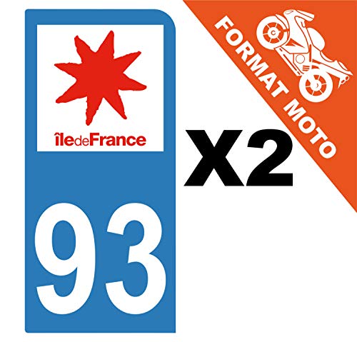 Supstick 2 Stickers Autocollants Plaques Immatriculation Moto Dept 93 Ile de France Bleu Clair 1 Angle Arrondi